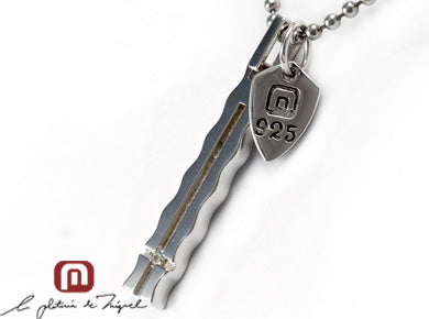 GEM:17563 エムアンドエムシルバー、ラプラコレクションからの新作、シルバーペアペンダントです。長方形のプレートに波型のエッジ、中央の溝には一粒のラインストーンが光る、とても優雅なデザインです。耐久性に優れたシルバー925にプラチナ仕上げ(ロジウム加工)を施している為、美しい艶が持続します。