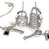 南京錠をイメージしたペンダントトップに、動きがある形でオニキススタッツがポイントで施されたデザイン。シンプルなのに存在感があるデザイン。男性にも女性にも愛されています。スマートで清潔感を感じさせてくれるSCANDALコレクションパンク風デザインをとりいれたショッキングでビザールな、スターリング・アクセサリーです。ショッキングなパンク的な大胆であり自由なデザイン。控えめなホワイトに仕上げられたシンプルなデザインの中にスタッツをデザインした。やや厚みがあり、シルバーの心地よい重量感が楽しめます。様々なシーンで活躍する優秀なデザインをペアで着けるのはいかがでしょうか。 silver・シルバー・SCANDAL・スキャンダル・ペンダント・ネックレス・南京錠・スタッツ・オニキス・ペア