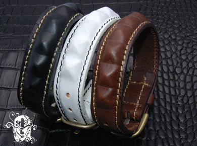 アンティークロックなレザーブレスレットの紹介です。スタッズ状に配置されたレザーが斬新な、ハード過ぎないデザインのブレスレットです。気兼ねなくロックテイストをファッションに取り込めます。手の出しやすいリーズナブルな価格帯が、プレゼントなどにも最適です。重ね付けなどにも最適な程よいボリュームがファッションを選ばず着用できます。この機会にアンティークロックの落ち着いたアクセサリーに触れてみてはいかがですか?カラーバリエーションから自分にぴったりの色合いをチョイスできます。 specs: 15mmx24.6cm, Weight: 21.7grams --------------------------------------------------- 詳細情報/スタッズブレスレット/レザーブレスレット/アンティークブレスレット/リーズナブル/ロック/シンプル/ Gem Code: 29750