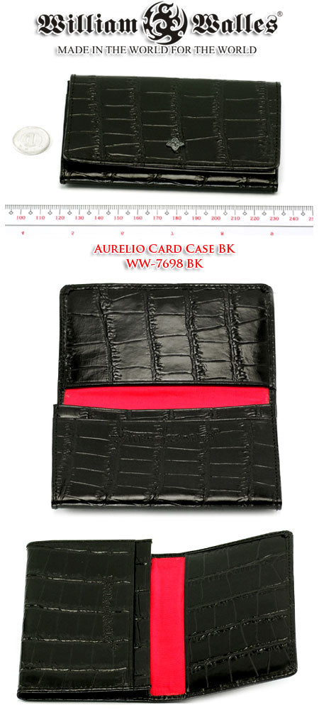 Gem ID 7698 ウィリアムウォレスがお届けするこのカードケースは、上質な牛革に迫力のあるクロコの型押しを施した高級感あふれるアイテムです。ウィリアムならではの技法で仕上げられた“型押しクロコ”は、豪華な光沢感と優美な形で本物のクロコスキンを思わせるような仕上がりになりました。日常使用または、社交会のどちらのロケーションにもきっと活躍してくれます。 中央にセットされているシルバーは、耐久性の高い純銀925を使用しています。大変コンパクトで持ち運び易く、カードだけではなくお札や名刺入れなど収納も抜群です!この機会にお試しください。 レザーでデザインされたカードケース。様々なシーンで使用できるクールなアイテムで、長く愛用できる大人の小物です。 specs: length: 114mm, weight: 46.10grams 詳細情報/レザー/カードケース/小物/シルバー/