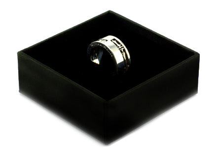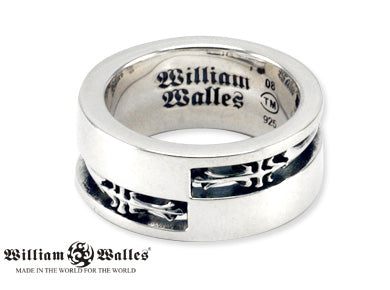 ファッションを邪魔しないシンプルな平打ちの中に繊細なデザインが個性的なレディースのリング。裏に記されたブランドネームの刻印が高級感を引き立てます。